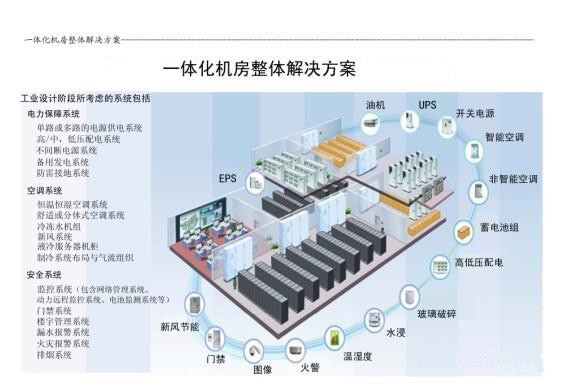 大型機房包括:空調、通風、給水、排水系統;漏水報警、門禁、閉路、監控UPS供電、照明、接地、防雷系統像等安防系統;機房環境及設備集成監控系統;計算機網絡設備運行監控系統;大屏幕投影顯示系統;機房及大樓綜合布線系統;火災自動報警和自動滅火系統;KVM服務器管理系統;消防、電氣、空調、安防等系統的連動控制等十多個系統;各系統通過IP網絡集成,達到各單位、各部門之間信息共享,資源整合、交換,實現網絡數據中心信息7×24h暢通,365天服務。